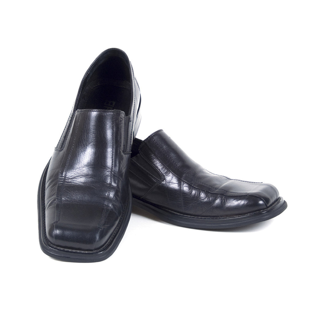 High fashion and classic good looks converge in this suave slip on from Kenneth Cole. Smooth leather upper in a dress slip on style, with a stitched and covered seam moc-inspired square toe, quarter panel curved overlays and flared tongue with side elastic panels for a comfortable, secure fit. Smooth leather lining, cushioned leather topped insole. Dress midsole with a beveled edge, 1 inch capped dress heel. Flat traction outsole.
